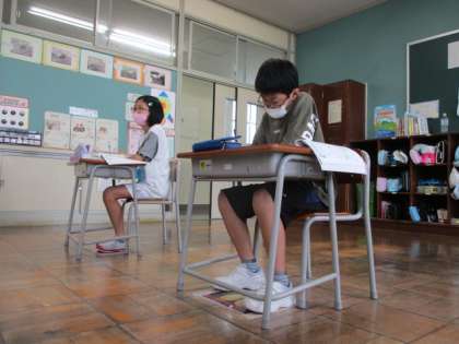 いつも集中して学習している4年生です。「グー・ペタ・ピン」の姿勢も自然に意識できています。