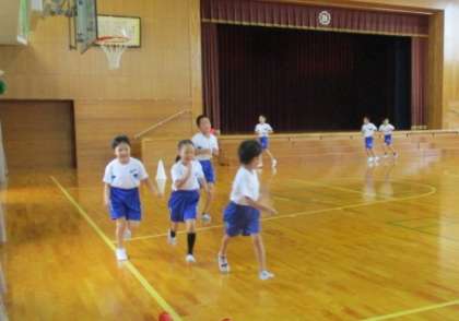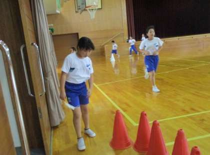 朝のトレーニングの後、子供たちは、体育館やグラウンドに頭を下げてお礼をして教室に戻っています。