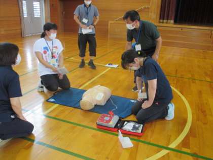 万一の場合の心肺蘇生やAEDの使い方について、教職員と保護者が講習を受けました。危機に遭遇した際に、最善を尽くせるように心がけていきます。