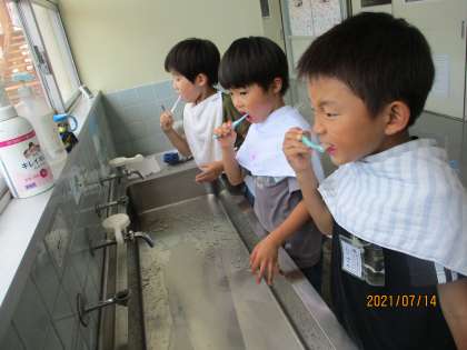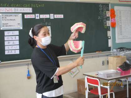 養護教諭から6歳臼歯の磨き方について教えてもらいました。