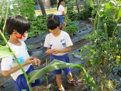 日々、収穫もあります。毎日畑の様子を見に来ている子供たちです。