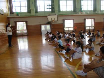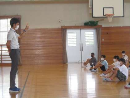 式後、生徒指導主事、養護教諭から、夏休み中の生活についてお話を聞きました。