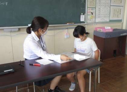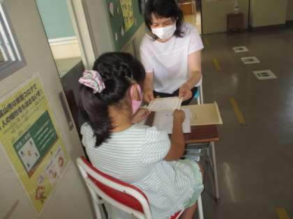 担任の先生から、がんばったことや成長してきたことを伝えてもらいながら、あゆみをもらいました。