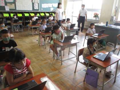 夏休み中は担任とクロムブックを通してつながることができます。また、クロムブックを使って課題に取り組むこともできます。