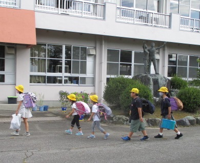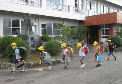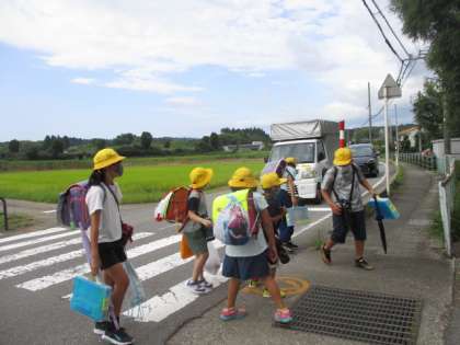 山本方面の子供たちは、信号のない横断歩道で停止した車のドライバーに必ず会釈をすることが習慣になっています。