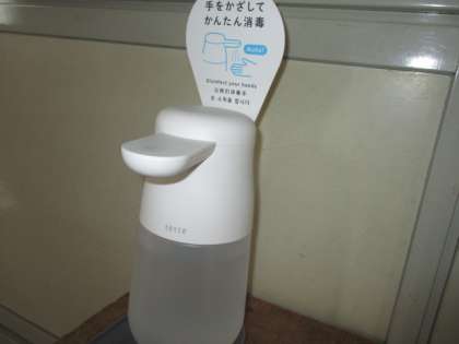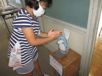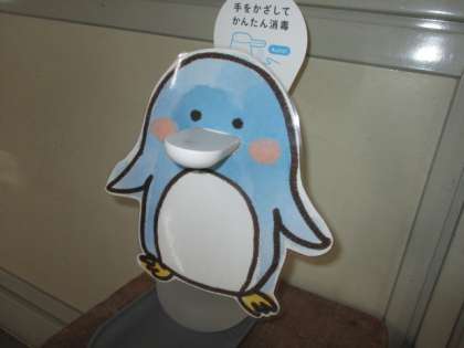 事務官さんのアイディアで助手さんが容器に一工夫しました。楽しく消毒しています。