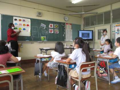 新しいALTの先生や外国語支援の先生と外国語活動を行いました。