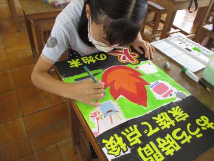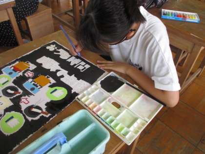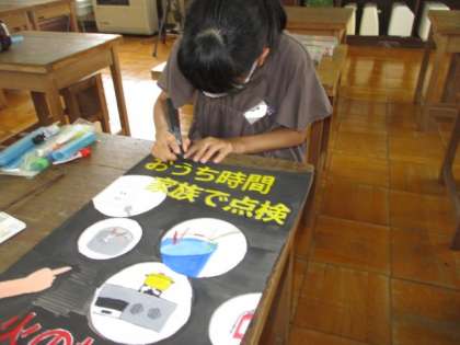 防火ポスターが急ピッチで仕上がってきました。集中しています。
