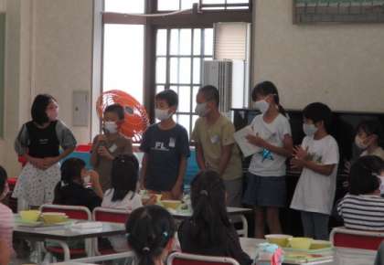 全校音楽で取り組んでいる演奏での楽器担当者の紹介がありました。みんな自分からやりたいと立候補した子供たちです。