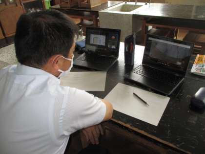デジタル教科書を随所に入れたり、カメラの位置を調整したりしながら、効果的なオンライン授業ができるように試しています。