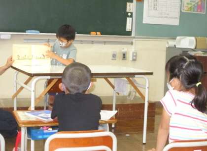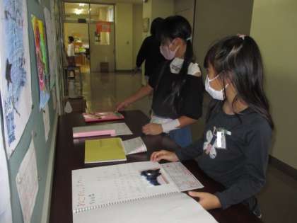 読み聞かせをしあったり、夏休みの研究を改めてじっくり見あったりして、室内で楽しく過ごしています。