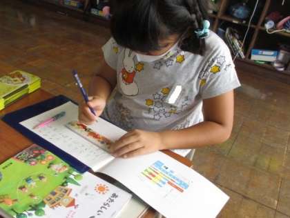 ノートのマス目にきちんと文字を書き、学習課題を定規の直線で囲むことにも慣れてきました。きちんとノートに学びの過程を書き記すことも大切に学習を進めています。