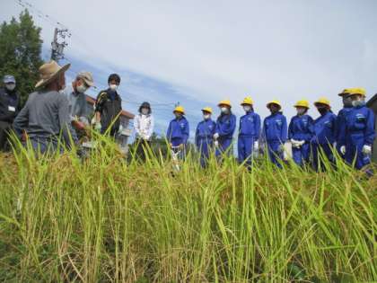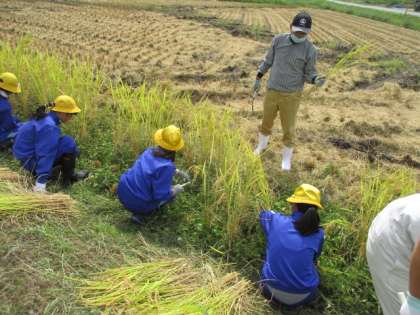教育後援会長様はじめ、地域の方々のご指導の下、稲刈り体験を行いました。