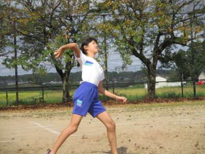 6年生の校内チャレンジ陸上記録会練習を兼ねて、ソフトボール投げの練習です。