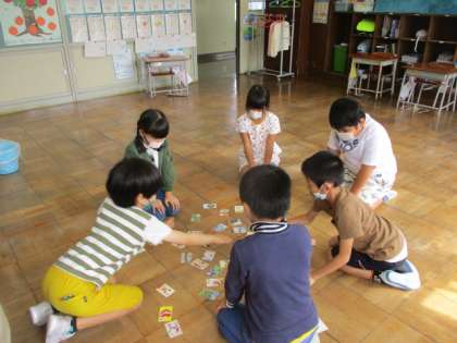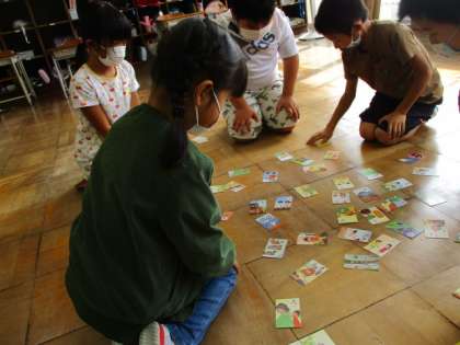 子供たちは、ときどきカルタを楽しみながら地域の特徴を確かめています。