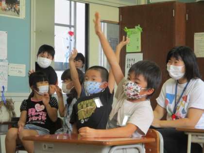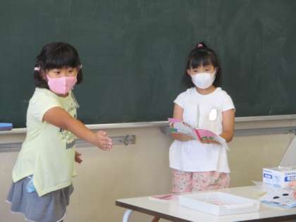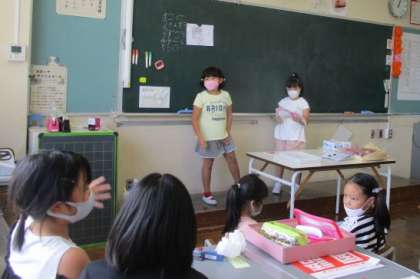 昼休みに、1年生がなぞなぞ大会を開きました。ほかの学年も参加して楽しい時間を過ごしました。