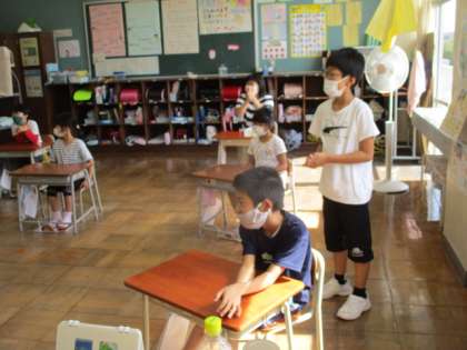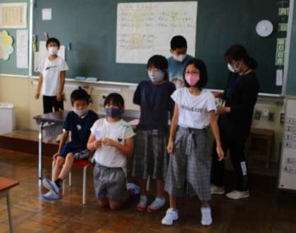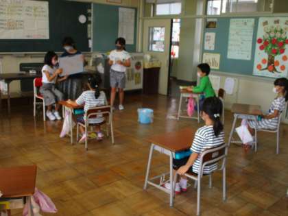 おいしいサツマイモを全校のみんなに配ってくれた1・2年生に、4年生がお礼の気持ちを込めて、楽しい交流の時間を作ってくれました。