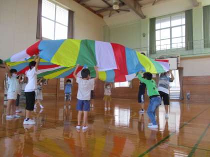 1・2年生と4年生で、楽しい時間を過ごしています。