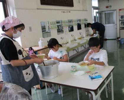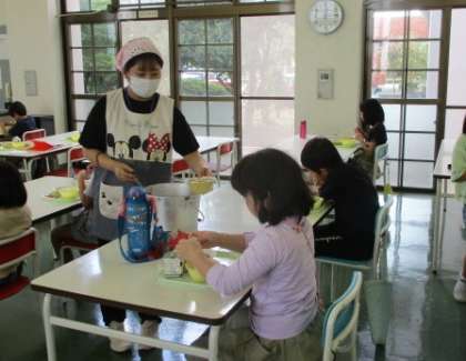うどんは子供たちに人気メニューです。今日も増量希望の手がたくさん上がりました。