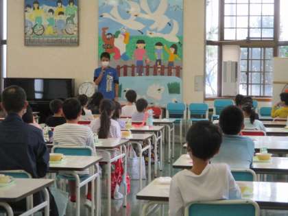 給食の時間に生徒指導の先生から、もうすぐ選挙が始まることについてのお話がありました。