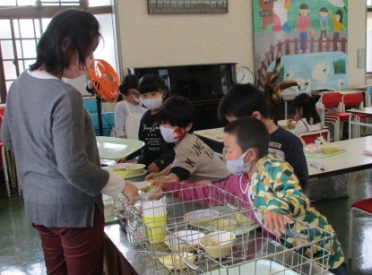 コロコロサラダの材料が何か、子供たちはいろいろと予想していました。