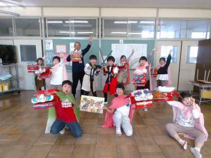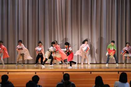 最後の獅子舞ダンスのシーンでは、地域の獅子舞をアレンジし、最後のシーンもしっかりと決めることができました。終わった児童たちは心からやり切った感じで素敵な笑顔が輝いてました。