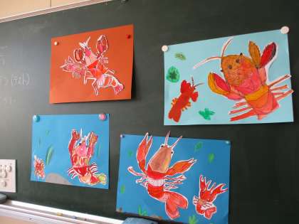 1年生がザリガニの絵を書き手切り取っていました。