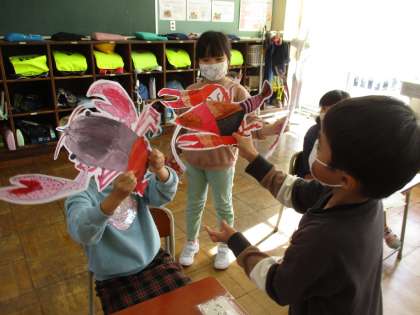 休み時間には、ザリガニに思い思いの台詞を付けて見せ合いをしていました。