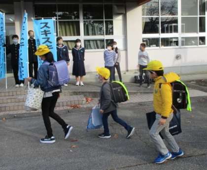呉羽中学校から、本校の卒業生があいさつ運動に来てくれました。
