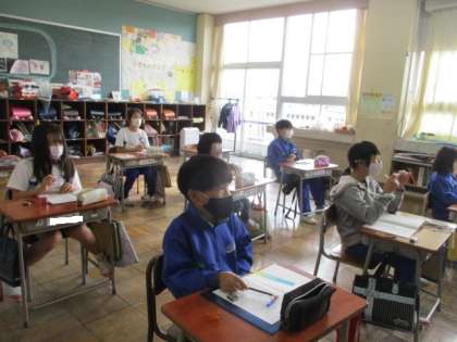 1つの点から等しい距離にある点について調べています。自分の考えをもつと、友達の考えと似ているところや違っているところについて比べています。