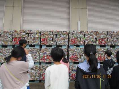 富山地区広域圏リサイクルセンターでは、燃えないゴミやビン、カン等の処理の仕組みを学びました。分別は大切だと改めて思う子供たちでした。