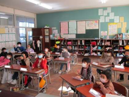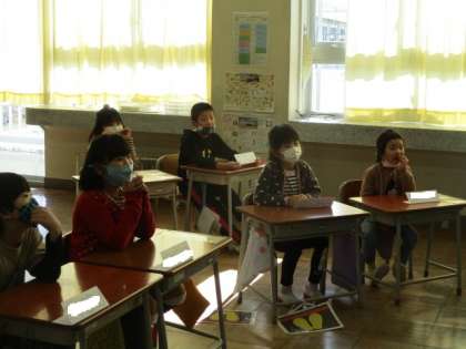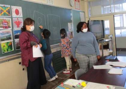 外国語支援講師とALTの先生、担任で、外国語活動を行いました。