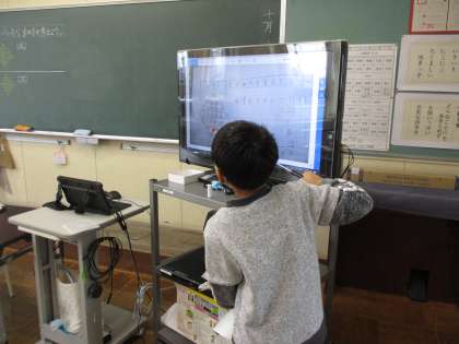 自分の考えをノートに書き表し、テレビを使って友達に紹介しました。