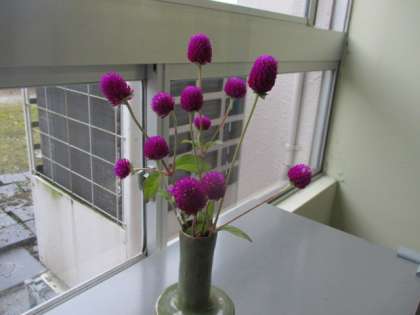 一昨日の花壇作業で夏花壇を片付けましたが、まだまだ美しく咲いている千日紅は、花瓶に生けられ。もうしばらく私たちの目を楽しませてくれています。