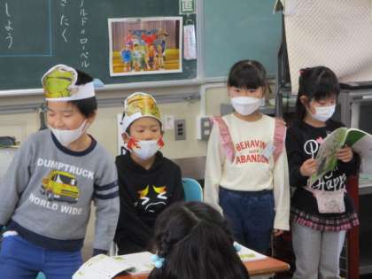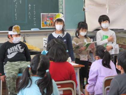2年生が国語で学習した「お手紙」の音読劇を披露しました。