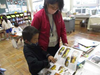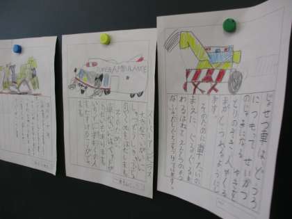 国語では、乗り物の特徴について調べて、まとめています。