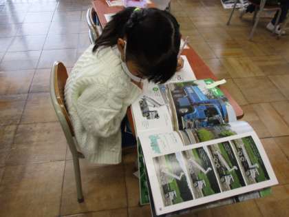 子供たちは、図書資料を見ながら、特殊車両にはどんな工夫がしてあるか熱心にまとめていました。