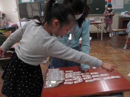 計算カードを一定の決まりで並べてみると、裏面の答えの並び方もきれいに整いました。