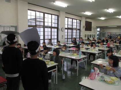 黒酢あんかけには、しいたけが使われています。さっそく「キノコブラザーズ」登場し、しいたけを紹介しました。