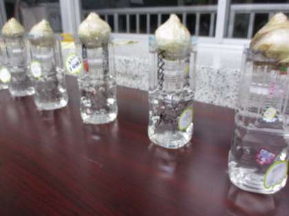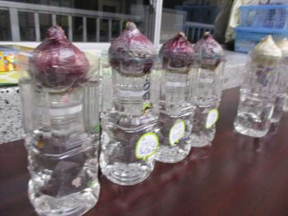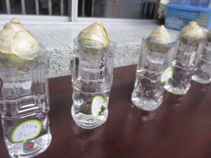 子供たちは、ヒヤシンスに名前を付けたり、ペットボトルに飾りを付けたりして、思い思いに工夫しながら大事に育てようとしていました。