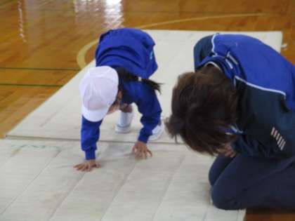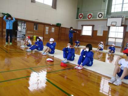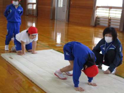 低学年は、前転や後転を教えていただきました。