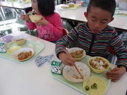 今日の給食は、麦ごはん、牛乳、スタミナレバー丼、ゆでブロッコリー、中華かきたまスープでした。