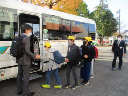 古沢小学校の5年生と一緒に学習します。行先は四季防災館、イタイイタイ病資料館です。