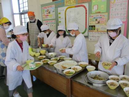 オンライン観劇で、6年生が少し遅れてランチルームにくることになりました。中学年が6年生の分も給食を作ってくれました。