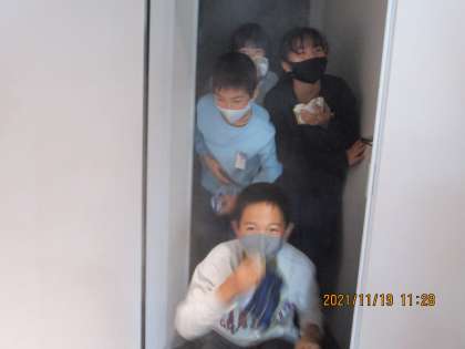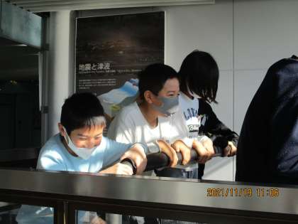 校外学習です。まずは、四季防災館です。地震体験や火災時の煙体験、洪水時の流水体験、火災時の消化器体験等をしました。普段とは異なる体験のため、驚きがいっぱいでした。
