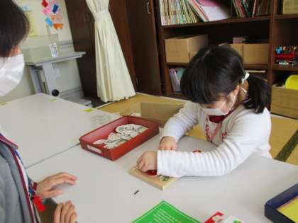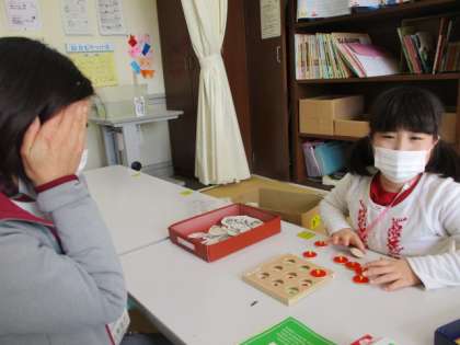 絵の場所を記憶して、当てていくパズルですが、担任の先生が負けてしまいました。降参です。