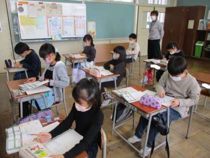 小数のしくみについて学習しています。学習補助の先生も授業補助をしています。