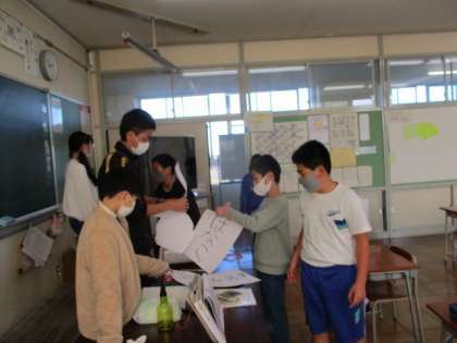 運営委員会の児童は、委員会の仕事の打ち合わせをしています。
