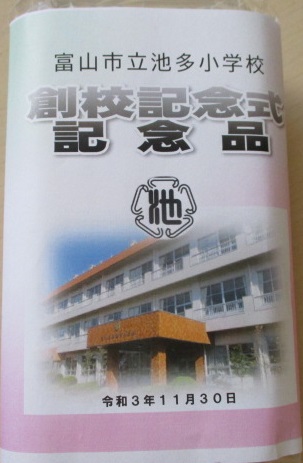 池多小学校PTAのアイディアで、創校記念式の記念品として「いもまんじゅう」が手配されました。