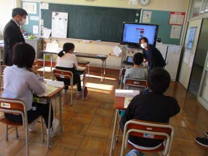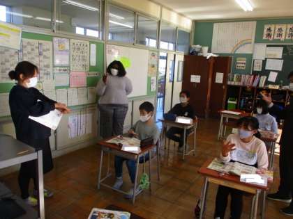 世界の文化の違いについてのエピソードを、外国語支援講師の先生が教えてくださいました。興味津々の子供たちです。